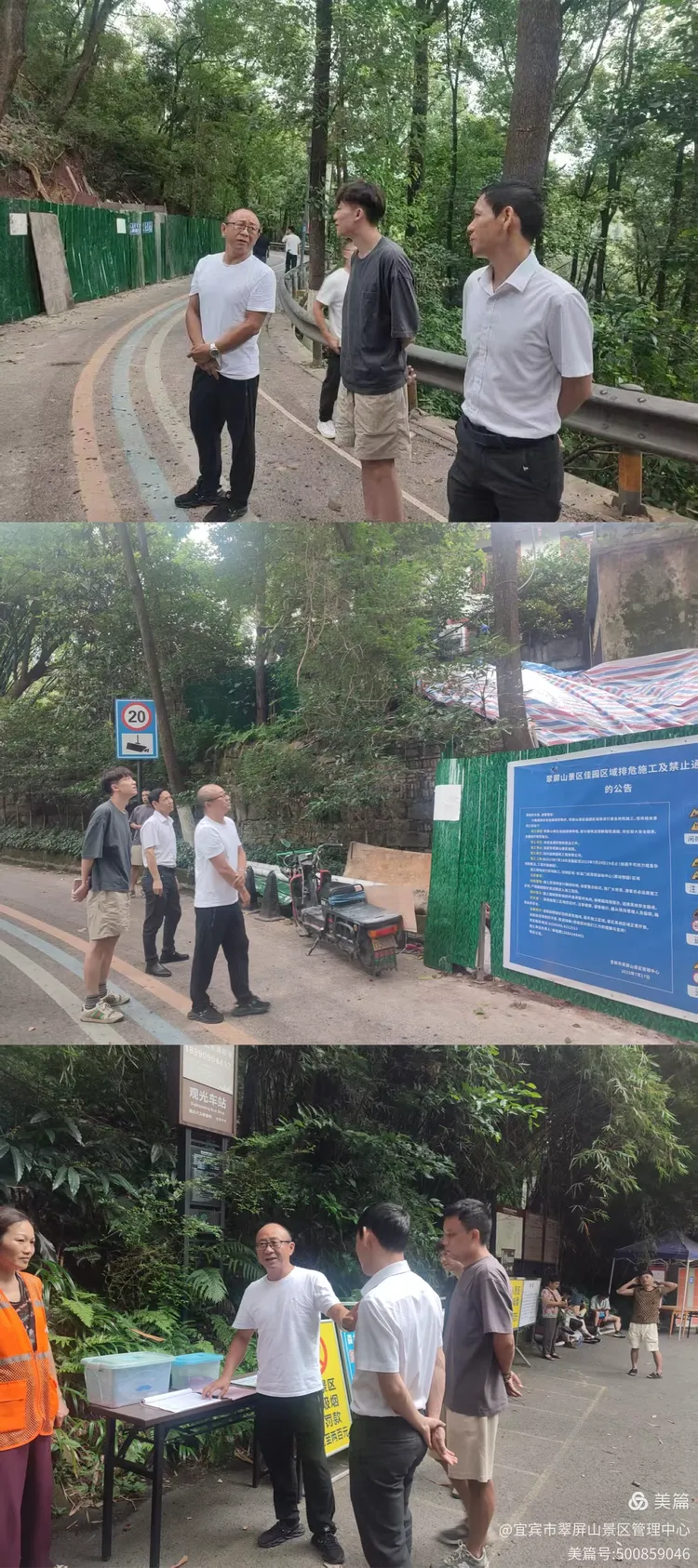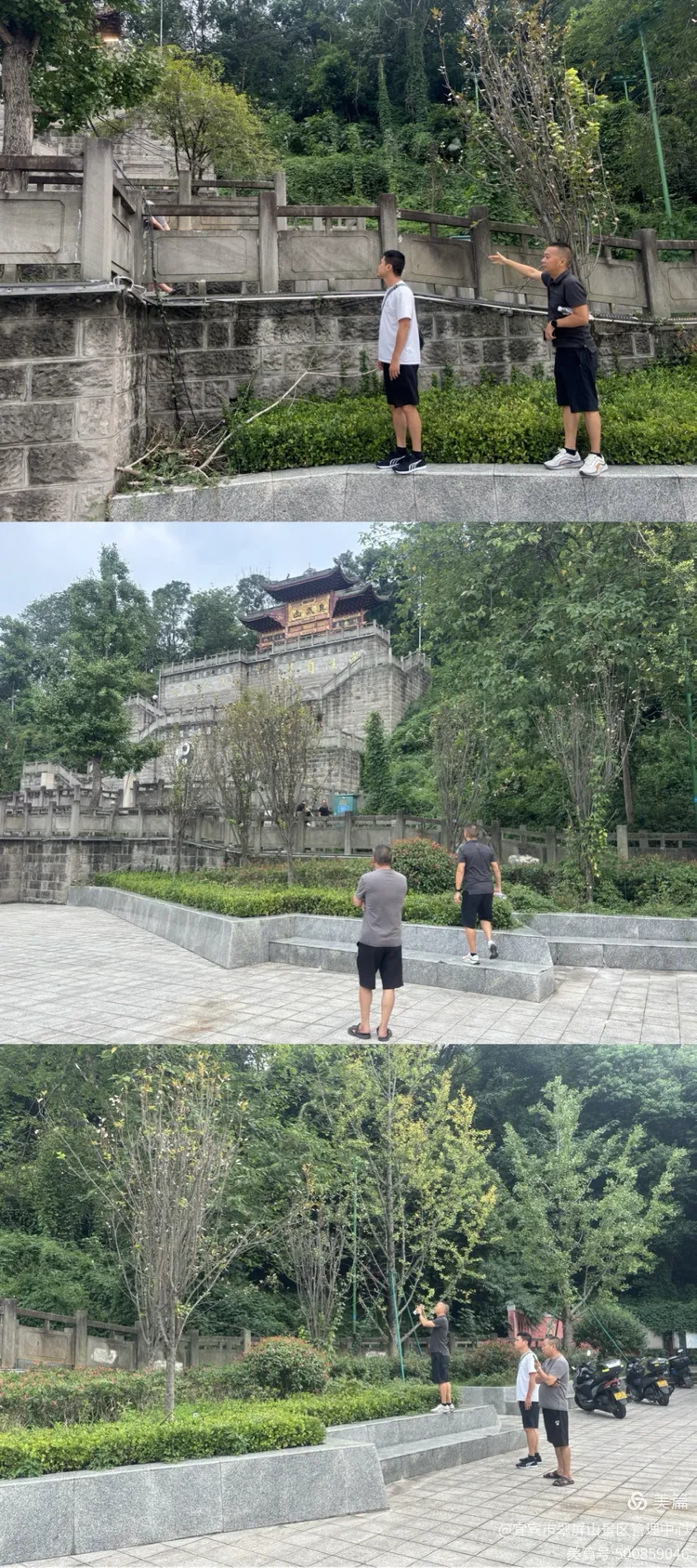 翠屏山景区副主任黄浩,会同三鼎公司查勘真武山、东大门牌坊及亮化工程现场,及时推进隐患整治工作。