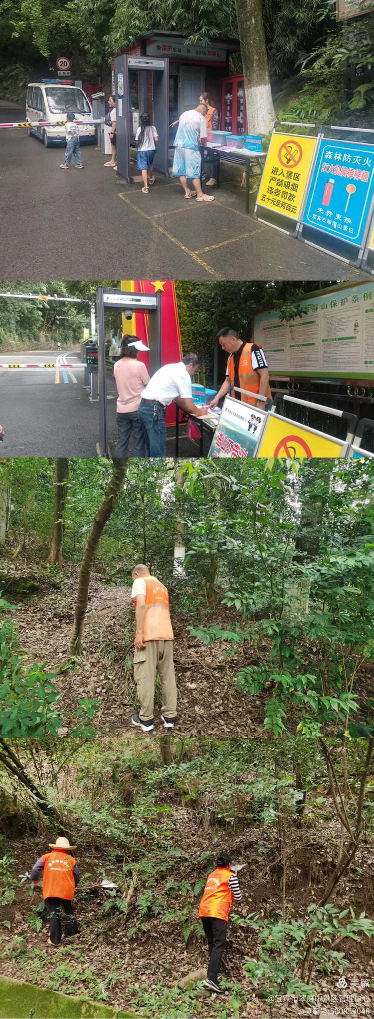 9月6日,翠屏山景区管理中心严格落实森林防火各项工作要求,抓实火源管控,做好防火检查登记杜绝火源进入,常态化开展巡林工作、林下可燃物清理工作。