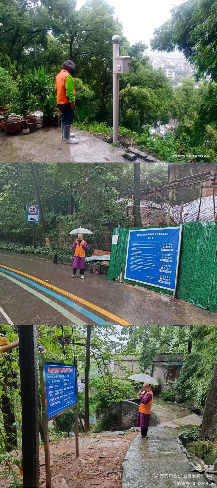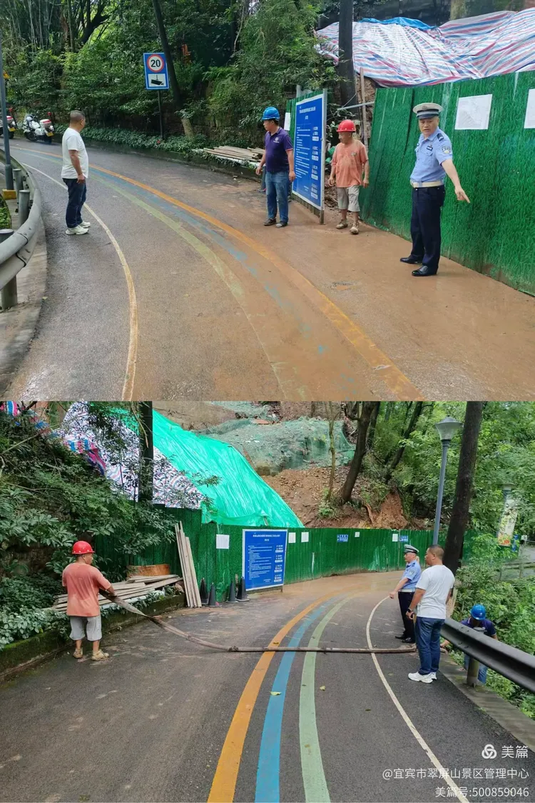 翠屏山景区对区域自建房、排险工地开展雨中安全隐患排查,预防次生灾害发生。