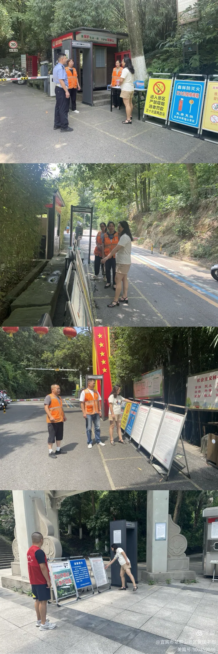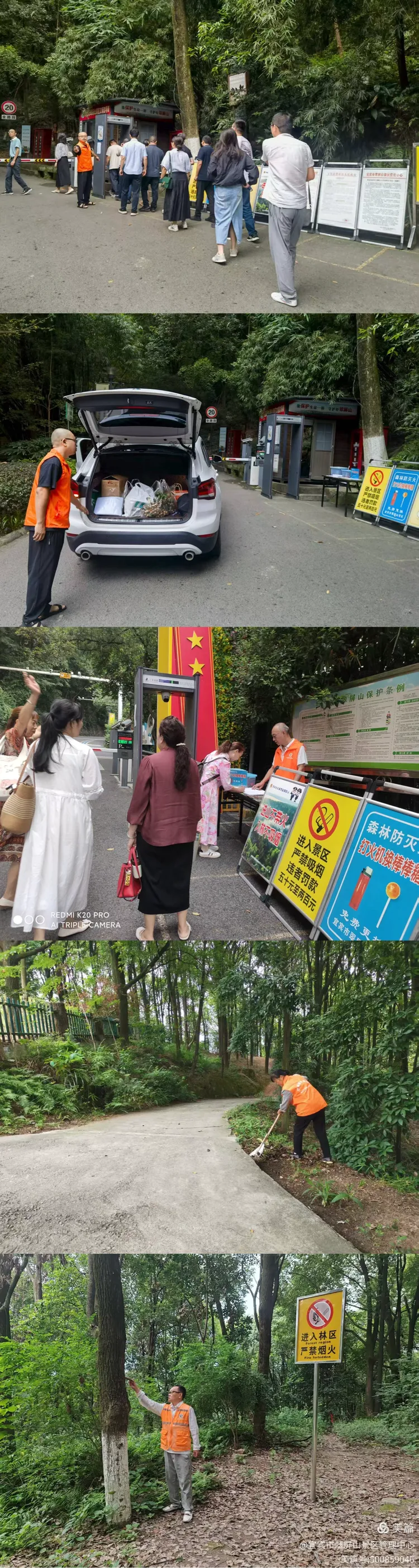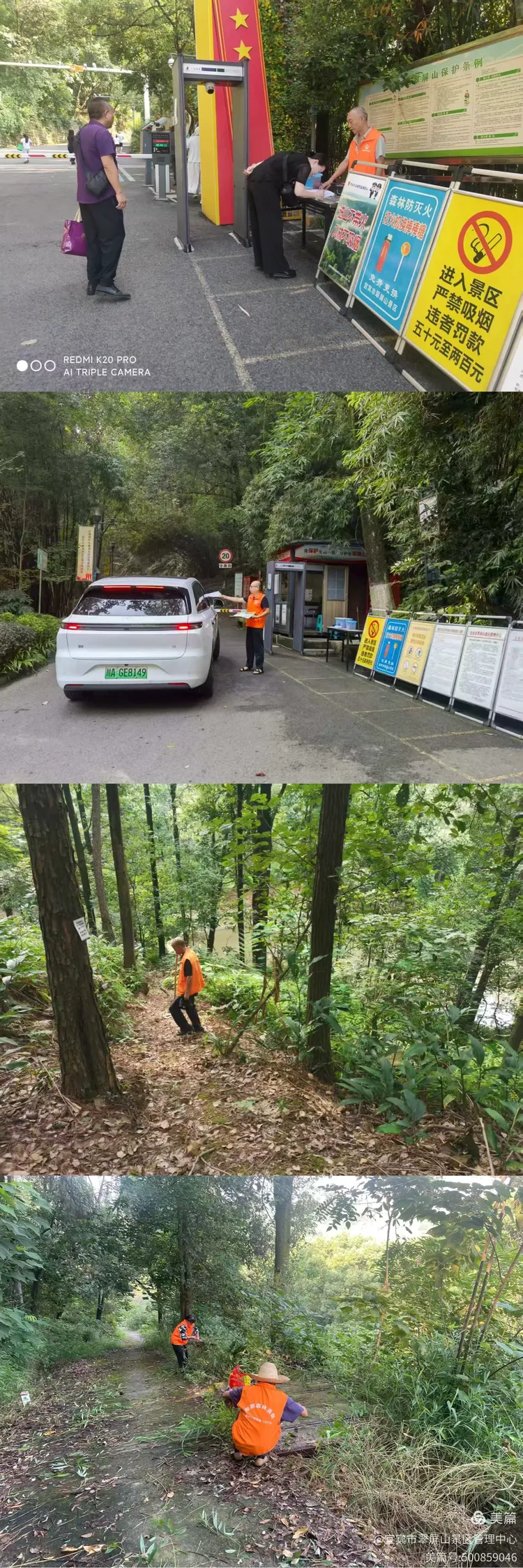 翠屏山景区管理中心创文期间,严格落实森林防火各项工作要求,抓实火源管控,切实做好森林防灭火工作,常态化开展火源管控巡林工作,做好防火检查登记杜绝火源进入,劝离违停车辆,减少安全隐患。