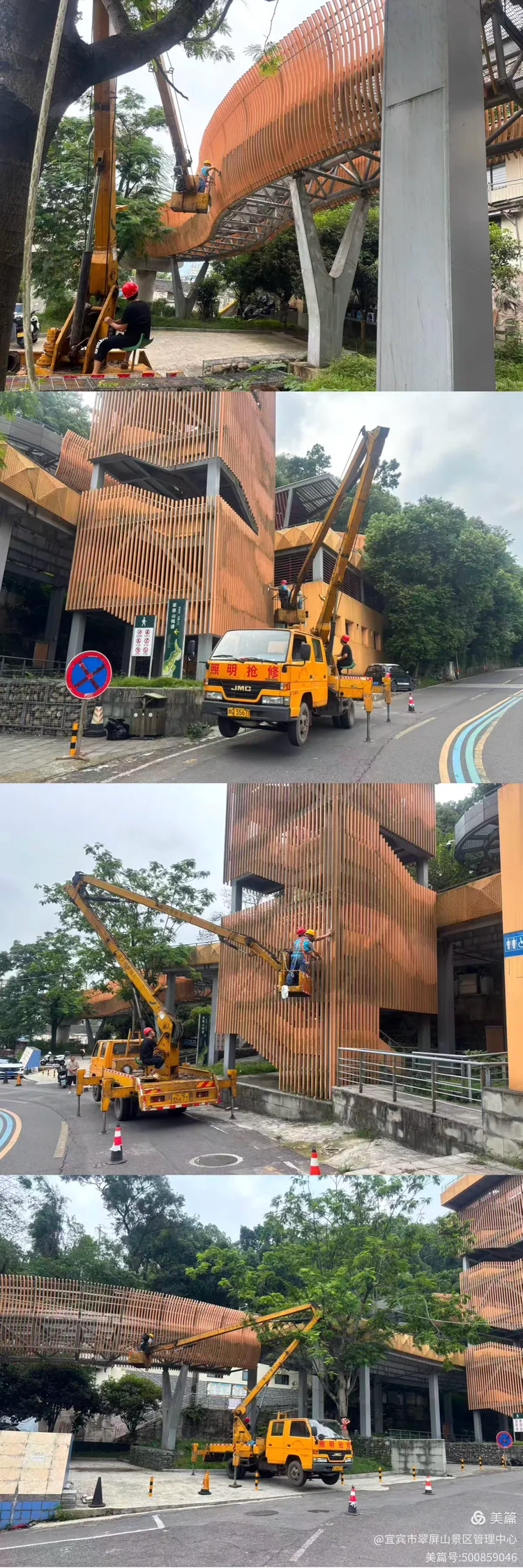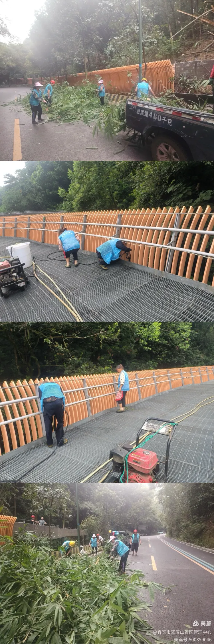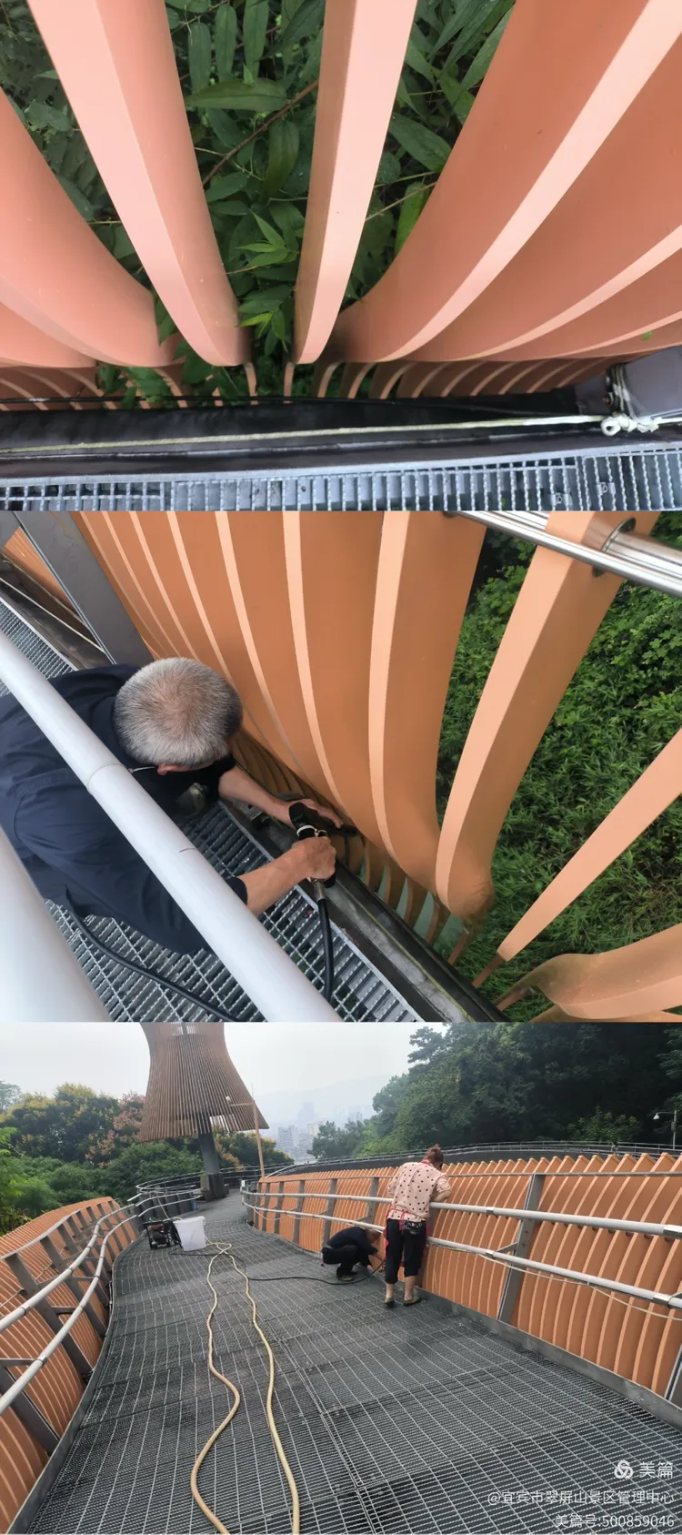 翠屏山景区清洗栈道彩铝板。
