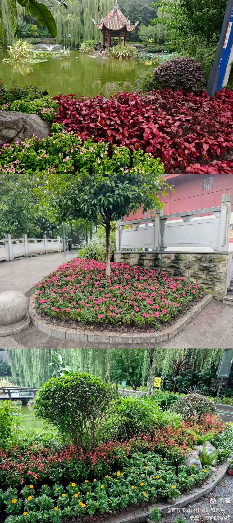 9月22日,翠屏山景区荷花池区域周边园林景观植物更换完成。