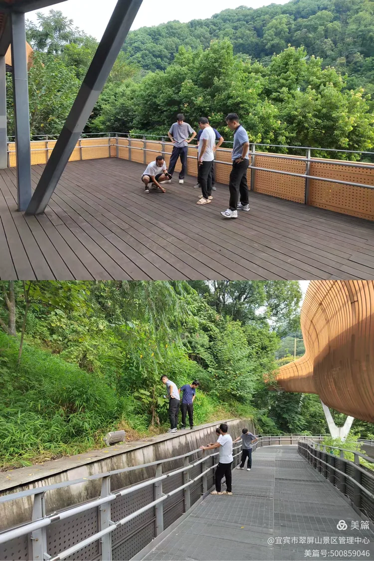 翠屏山景区人行栈桥全面清洗。