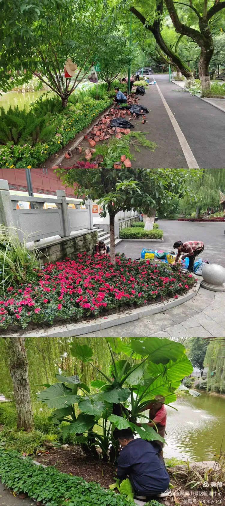 翠屏山景区荷花池周围更换、补栽植物,提升绿化景观效果。