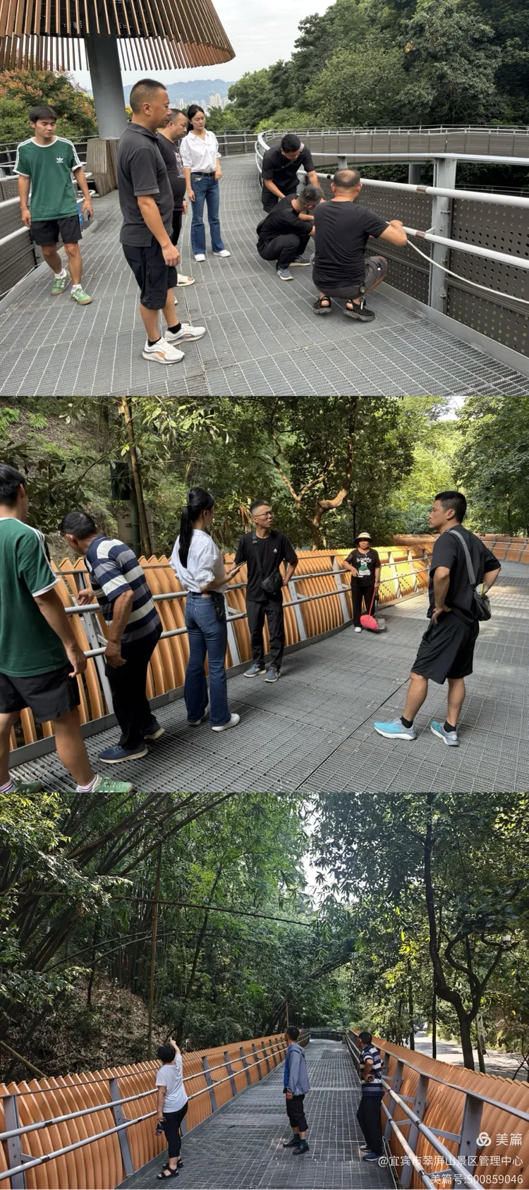 翠屏山景区黄主任带队开展盐水溪人行栈桥现场查勘,落实区园林中心交办的整治和提升工作。