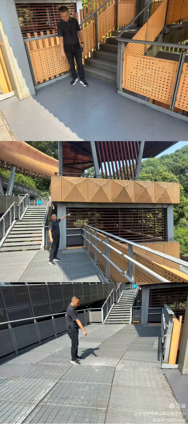 翠屏山景区黄主任检查盐水溪人行栈桥整改情况。
