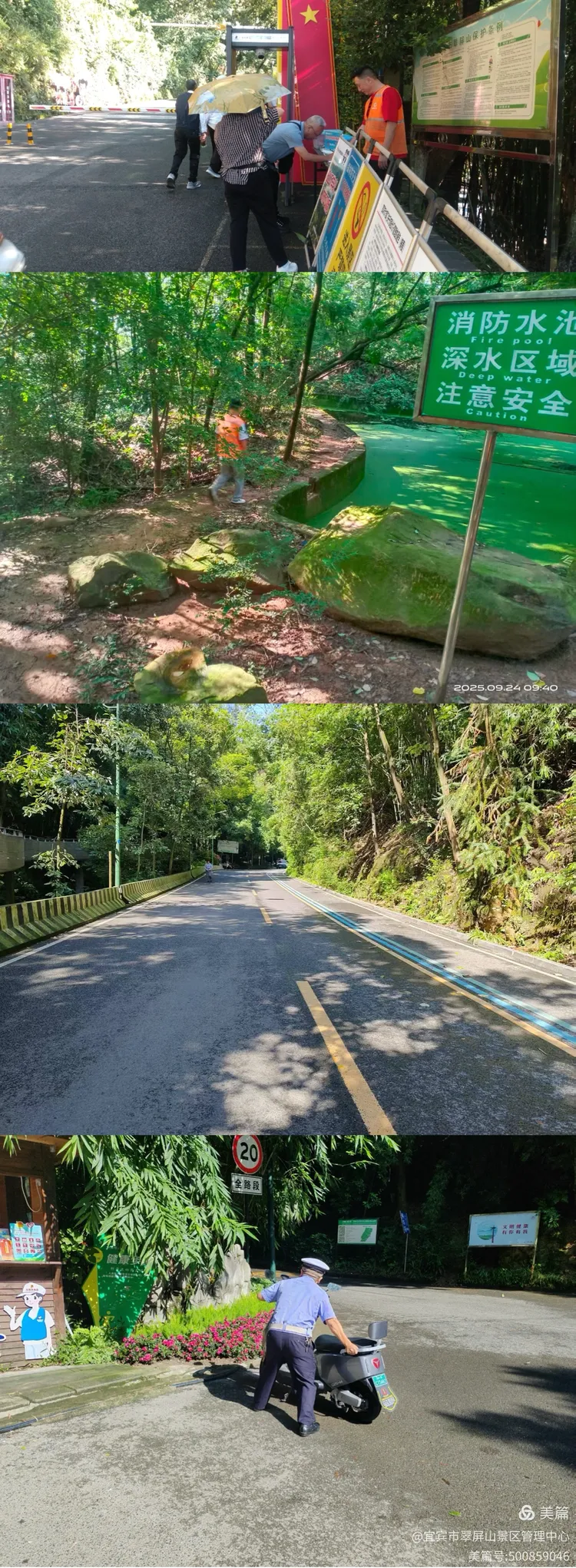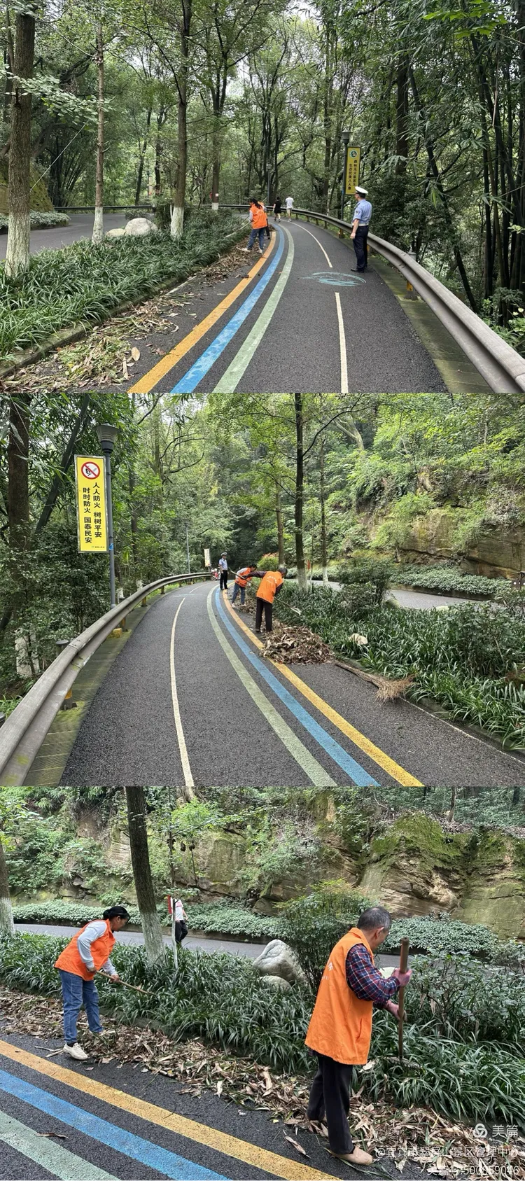 9月28日,翠屏山景区对盐水溪主要路口防火通道两侧林下可燃物清理,确保国庆期间安全稳定。