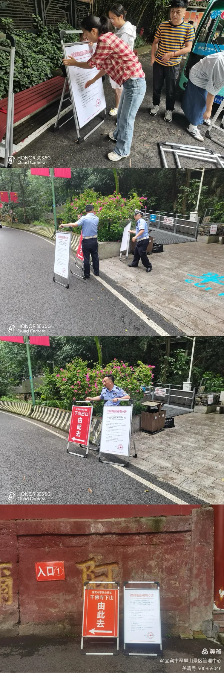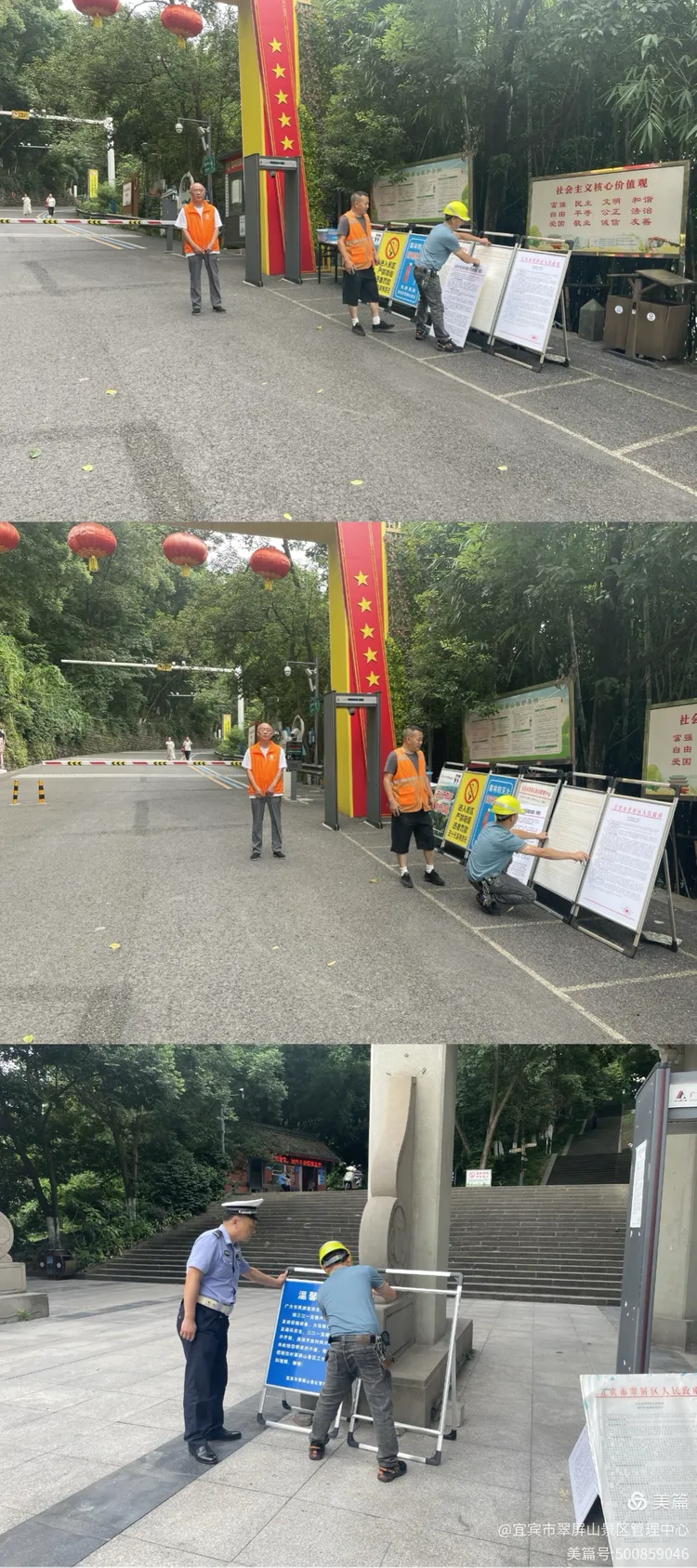 翠屏山景区提前摆放指示提示牌,为迎接双节到来做准备工作。