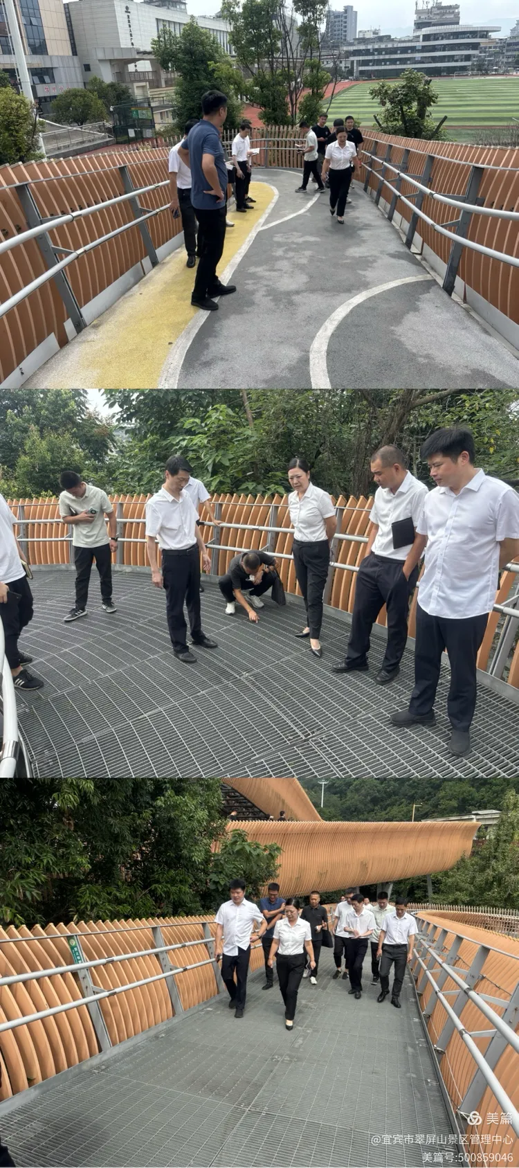 区市政园林中心党委书记、主任刘腊梅检查翠屏山人行栈桥管护运行情况。副主任吴孟廷、中心相关科室参加。