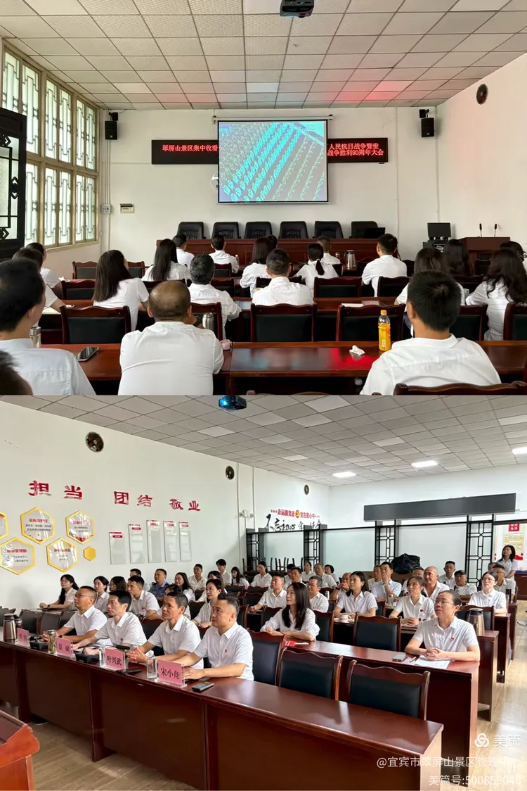 9月3日,翠屏山景区集中收看纪念中国人民抗日战争暨世界反法西斯战争胜利80周年大会。