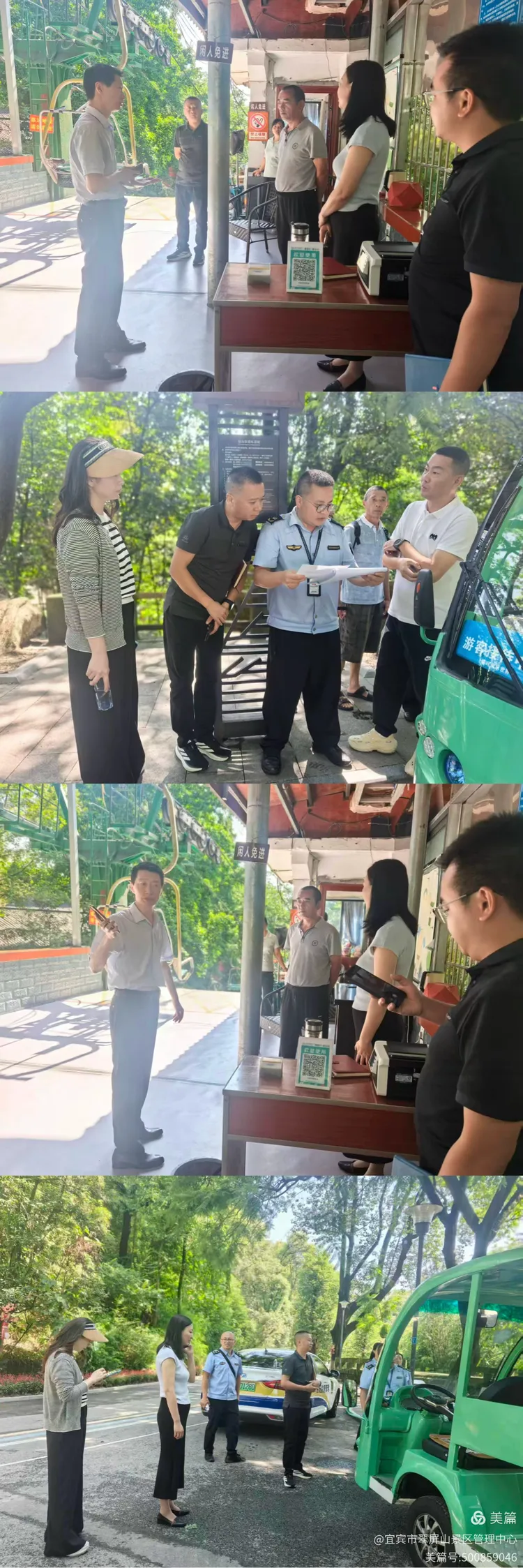 翠屏山景区会同翠旅投、市场监管局对索道、观光车开展节前安全检查,景区晏主任,黄主任参加。