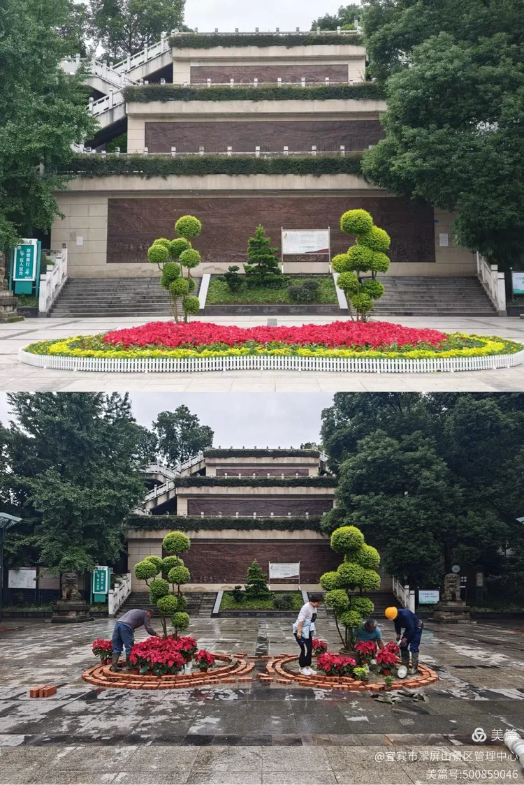 9月18日,翠屏山景区对枯枝树木进行清理、对造型植物进行修剪、对枯死地被植物进行更换或补种,以全新的面貌迎接国庆。