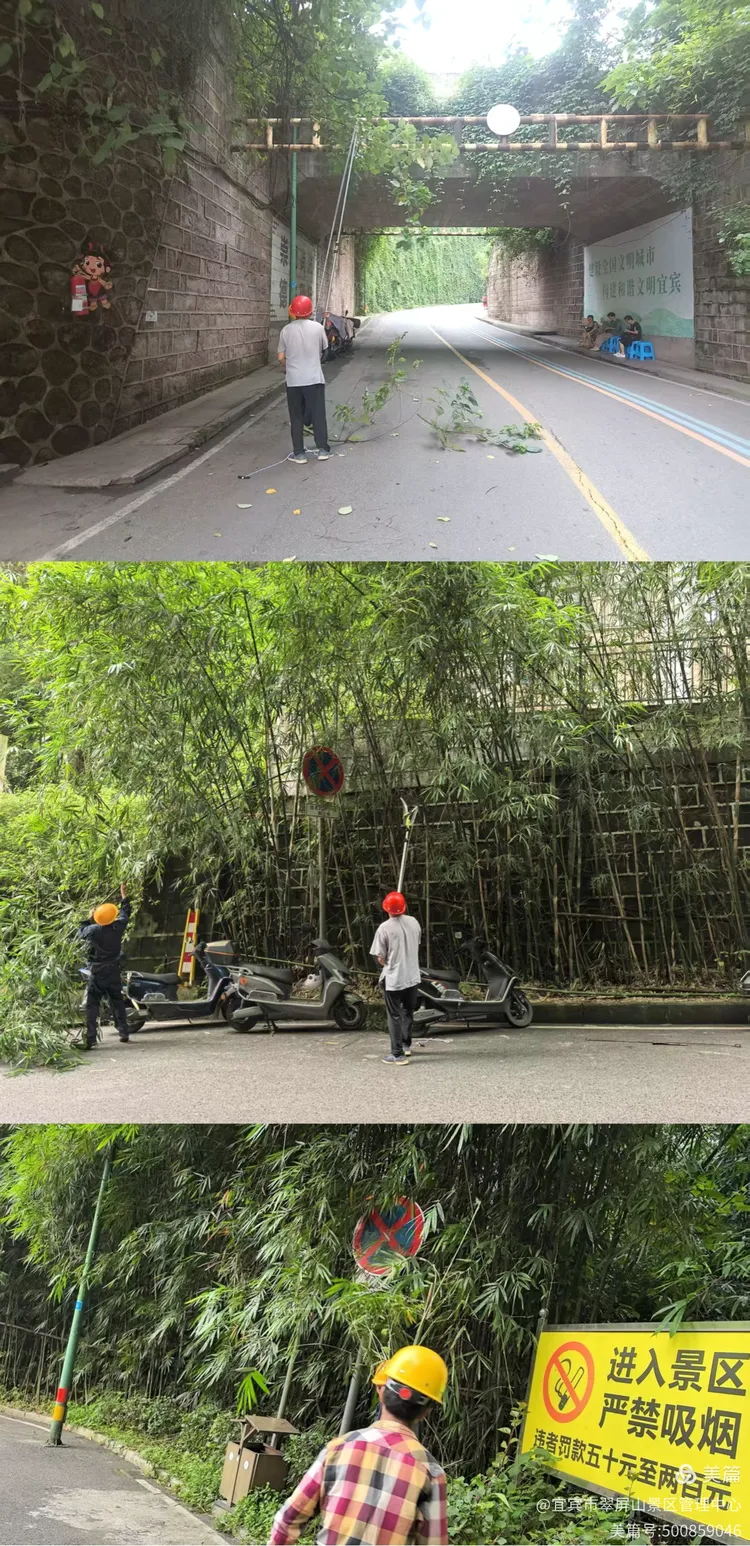 9月4日,翠屏山景区人行栈道沿线排危修剪。