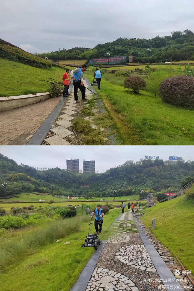 9月8日,翠屏山景区绿岛草坪整形修剪。