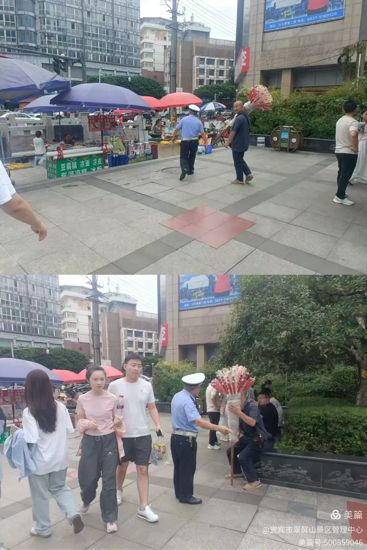 翠屏山景区对占道经营、破坏环境卫生的游摊进行劝导,提升景区整体形象。