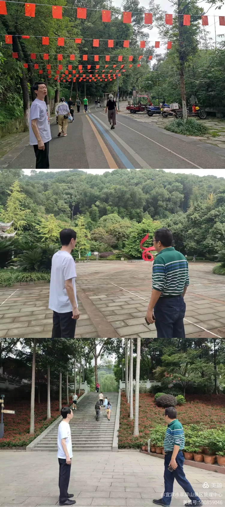 9月27日,翠屏山景区晏主任对国庆节氛围营造、温馨提示牌完善情况及2025菊展布展情况进行检查。