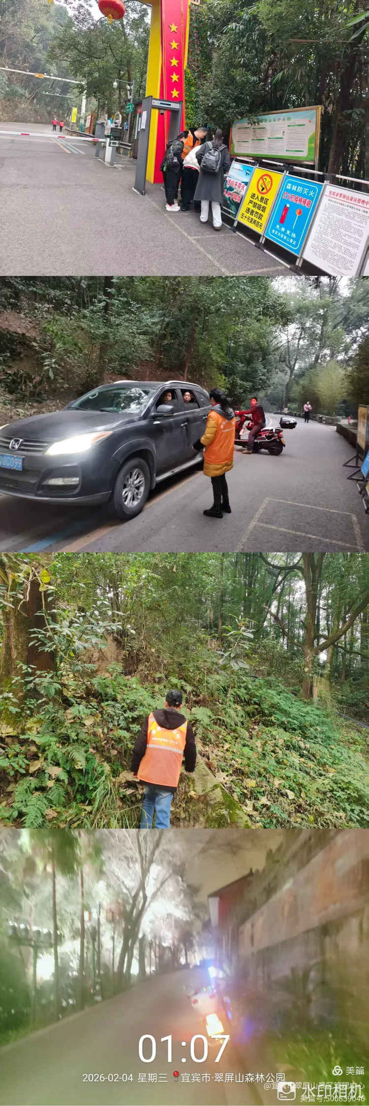 2月23日,翠屏山景区工作人员全部到岗履职尽责开展森林防火管控、安全秩序,交通疏导,为游客提供舒适的旅游环境,确保群众过一个平安祥和的春节。